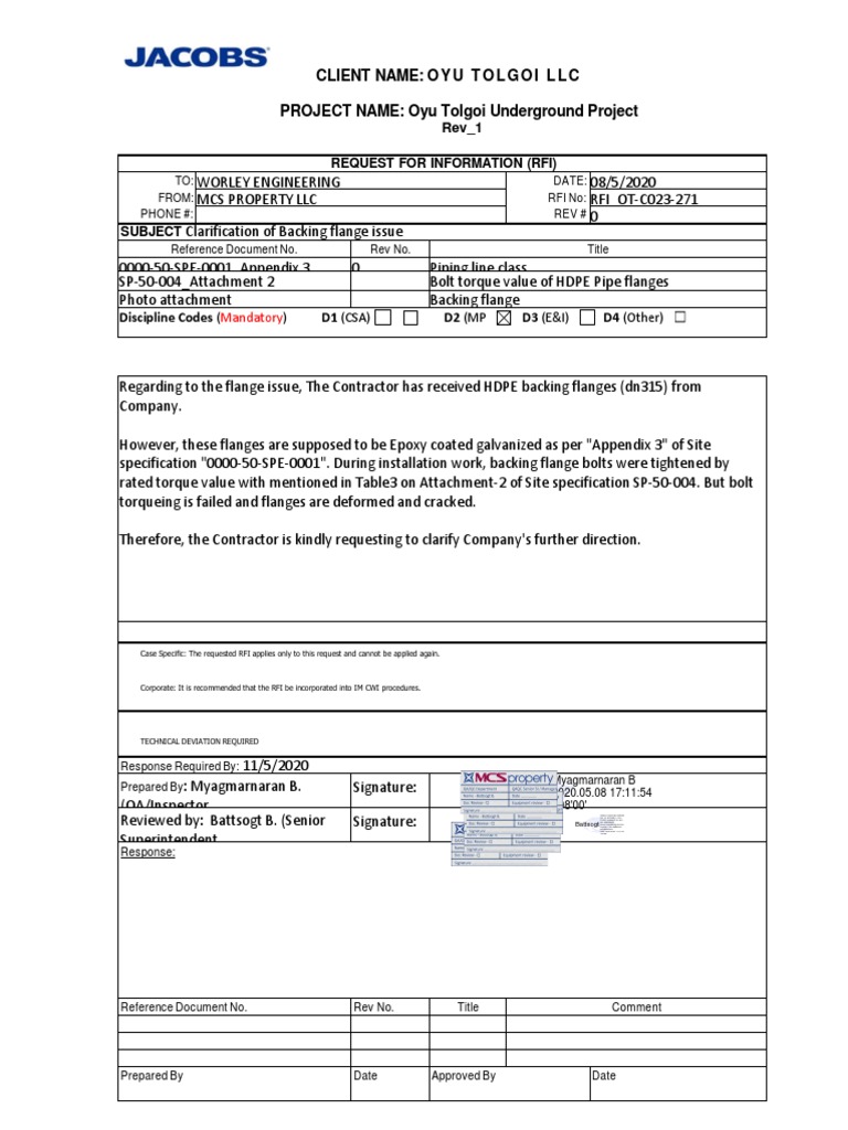 Client Name Oyu Tolgoi Llc Project Name Oyu Tolgoi Underground Project Pdf Pipe Fluid Conveyance Building Engineering